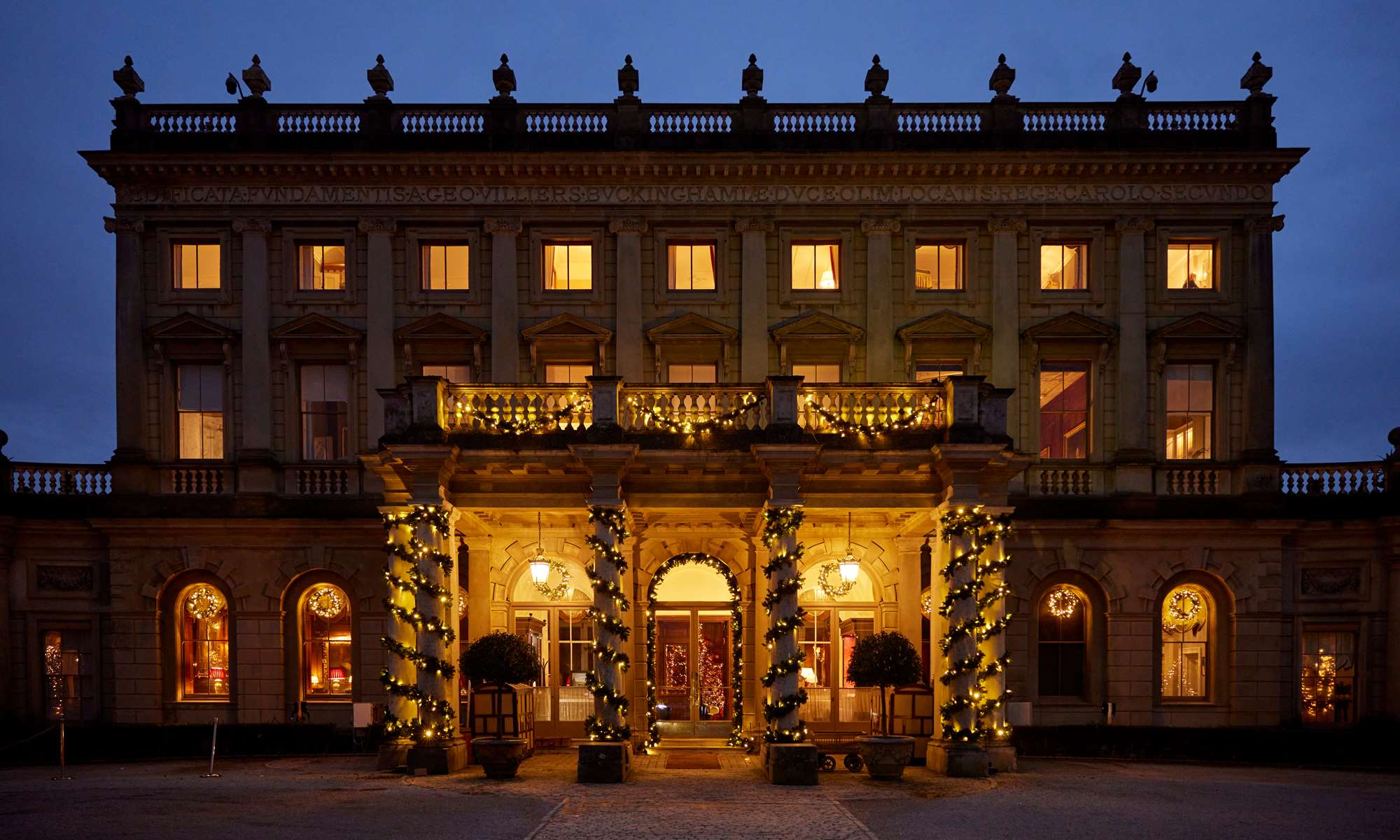 Laurent-Perrier Champagne flows and canapés are served at a reception with carol singers, before sitting down to enjoy a a three-course gourmet dinner.