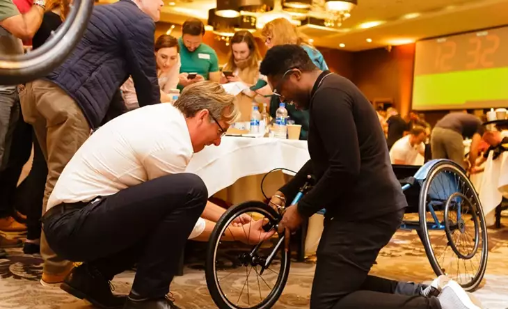 This 2.5 hour challenge kicks off with a briefing and presentation from the chosen charity. Participants will learn how the bikes will be used creating a strong incentive and emotional bond for the group. Teams of 5-8 guests will each be allocated a professional workshop with all the tools and equipment required to build one bike, but before they can start one member of the team has to get The Knowledge. The Knowledge session provides the designated