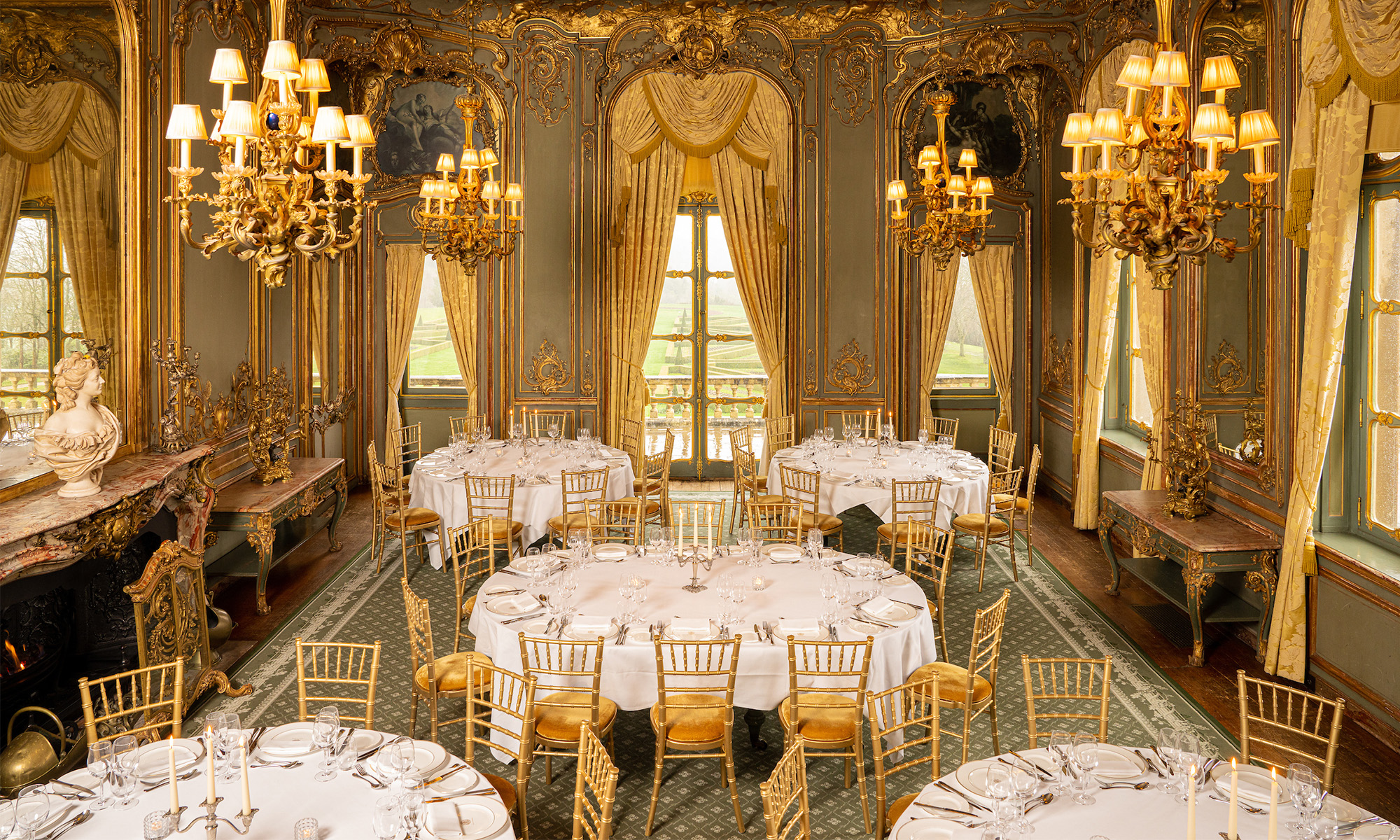 A Rococo masterpiece with views of the river and surrounding Berkshire countryside, it seats up to 60 guests. The French Dining Room provides an incomparable setting for a romantic wedding breakfast, impressive lunch or sumptuous dinner.