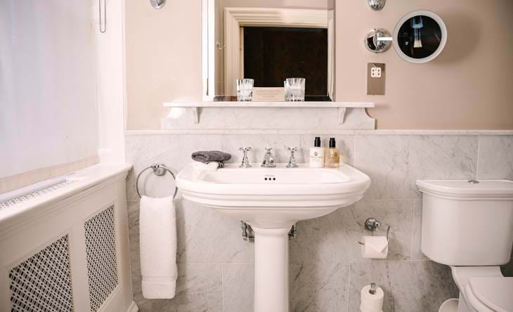 En-suite bathroom with shower over bath or walk-in shower only – Hairdryer – Fluffy bathrobes and slippers – Noble Isle toiletries