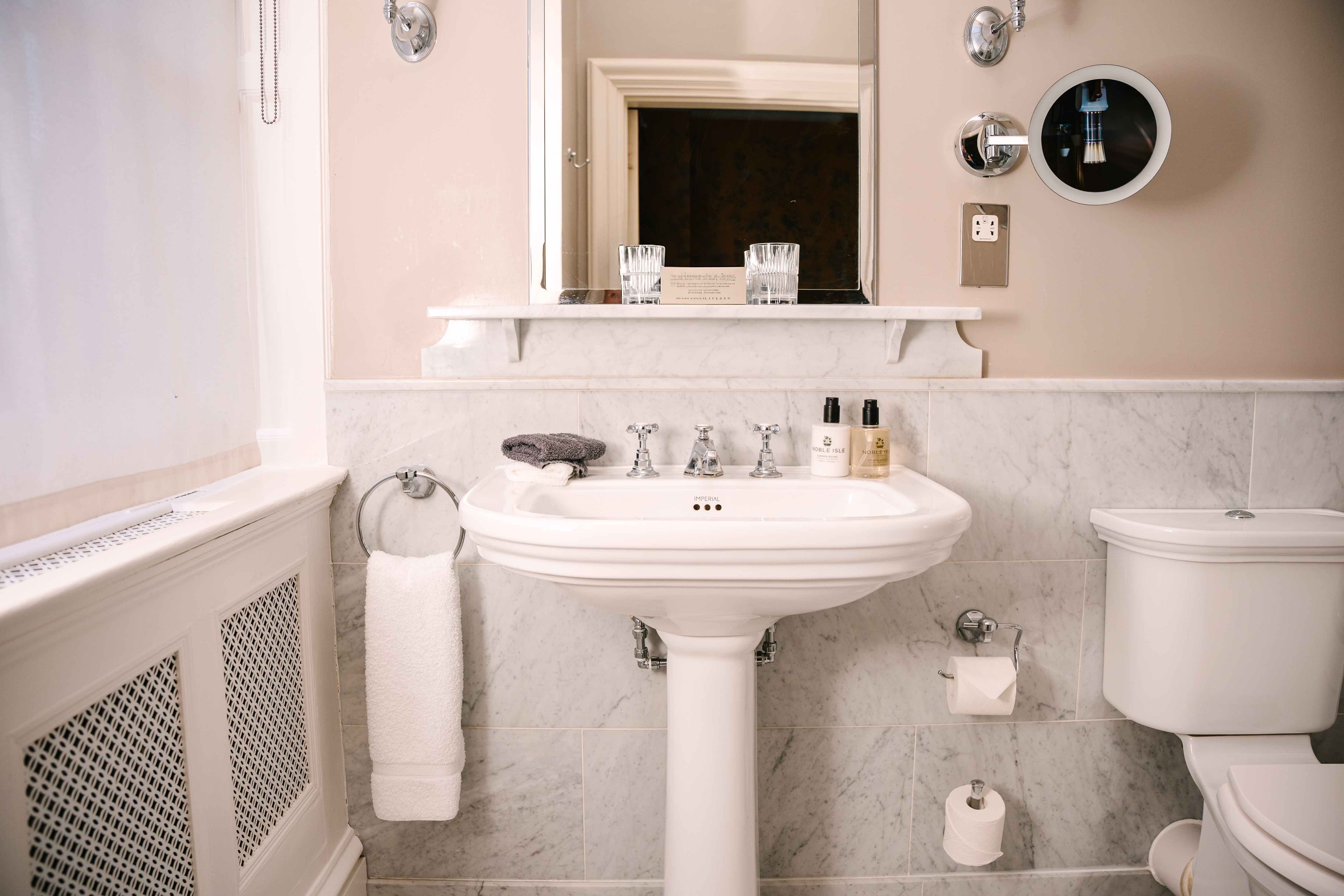 En-suite bathroom with shower over bath or walk-in shower only – Hairdryer – Fluffy bathrobes and slippers – Noble Isle toiletries