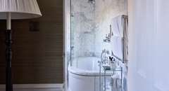 En-suite classic bathroom with shower over bath, with 1 room having a walk-in shower – Hairdryer – Bathrobes and slippers – Noble Isle toiletries