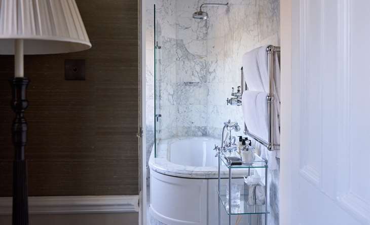Positioned on the first or second floor of the house, our spacious Deluxe Double Rooms are available in both traditional and modern classic styles. Each of our rooms is adorned with period features and come complete with their own fireplace, comfortable seating area and en-suite classic bathroom.